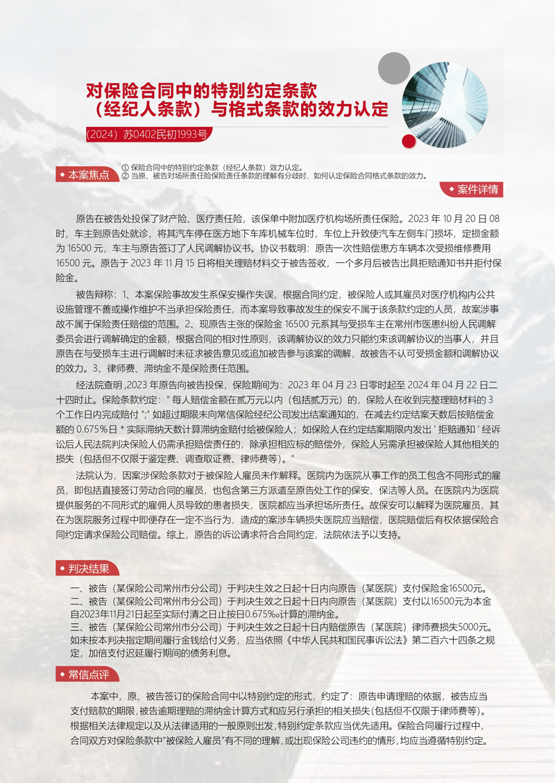 常信典型案例:對保險合同中的特別約定條款(經(jīng)紀(jì)人條款)與格式條款的效力認(rèn)定
